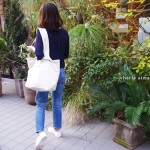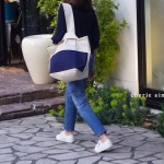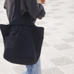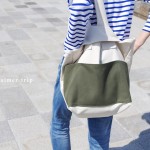 長い方の持ち手を短い方の持ち手に入れ込み、ワンハンドルになるデザイン。 自然にバッグの口元もキュッと閉まり、バッグに “くたっと感”がでます。さらに、上質な厚みのある帆布を使用し、ハンドルの太さや横いっぱいのポケットなど細部にこだわることで、こなれ感もでるバッグになりました。